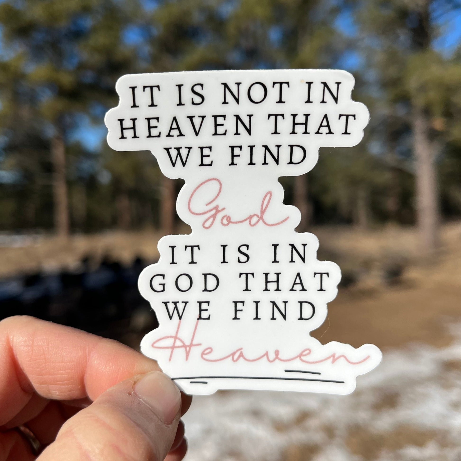 It is not in Heaven that we find God; it is in God that we find Heaven Inspirational Vinyl Sticker