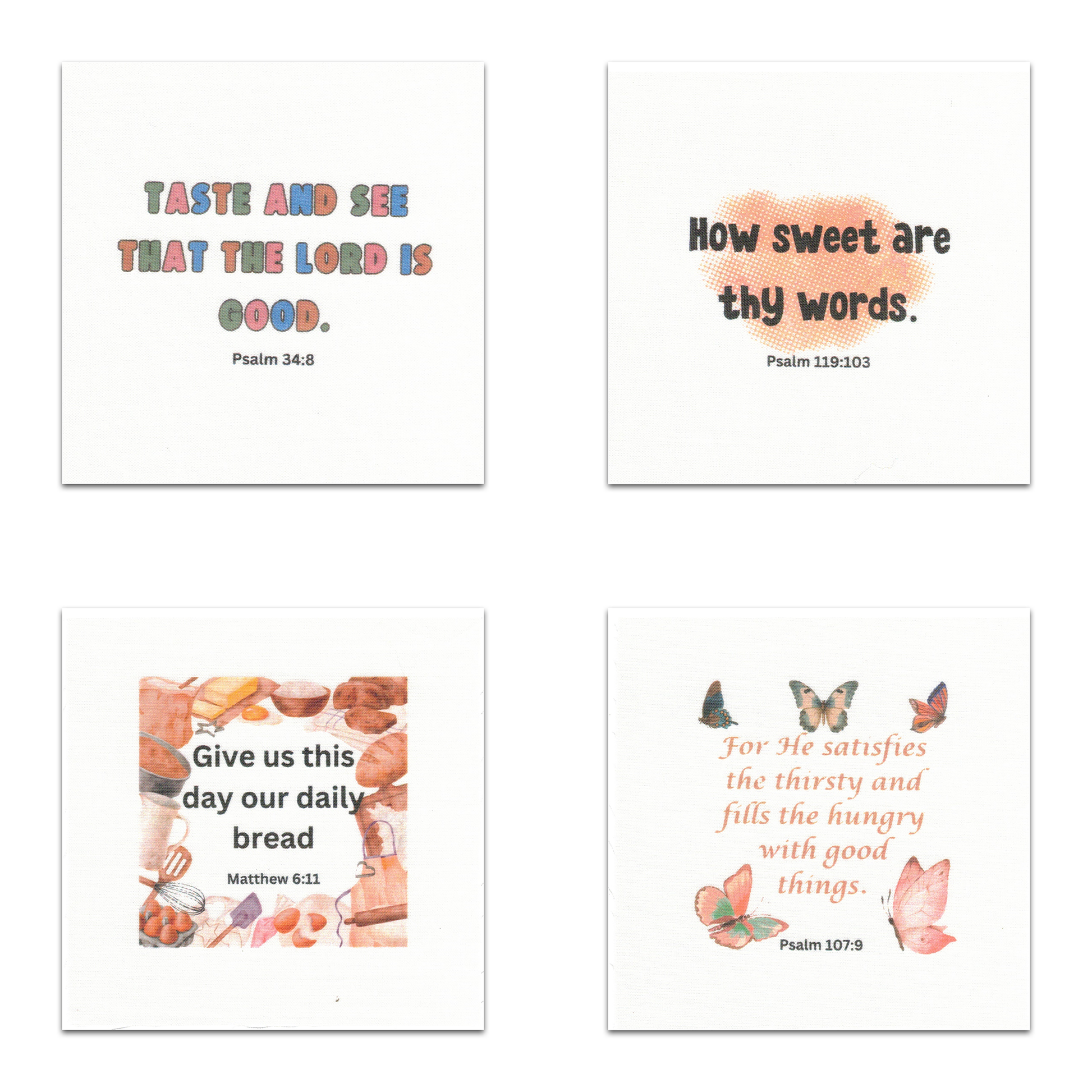Set of 20 Food-Themed Bible Verse Quilt Squares
